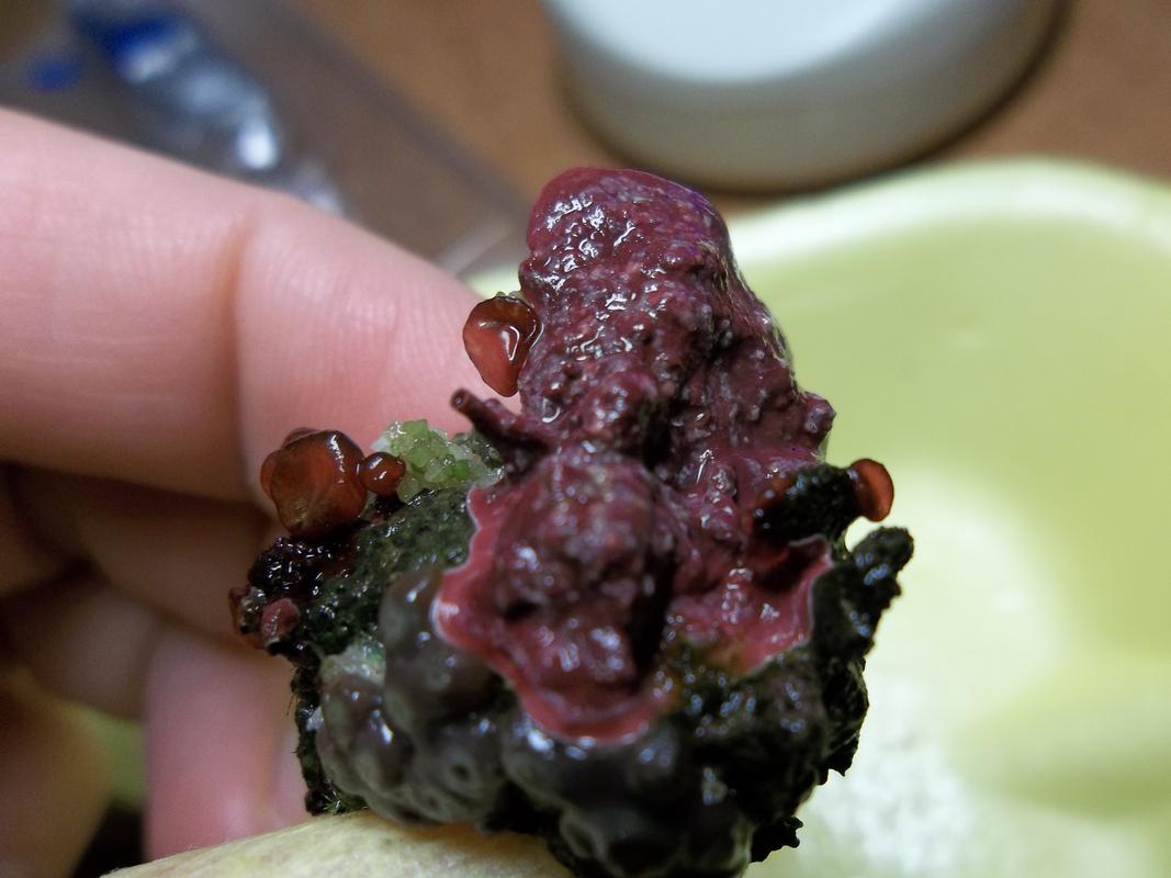 акв@фанат, Согласен , похожа на Lithophyllum stictaeforme . Не удержался и сфотал сразу один камень в своём рифе (размер пол литровую банку) он весь оброс каролиновым слоевищем, корками и сам по себе оригинален даже без беспов. И замечу, если сломаешь ненароком то очень быстро вырастает заново.Фото на обзор.