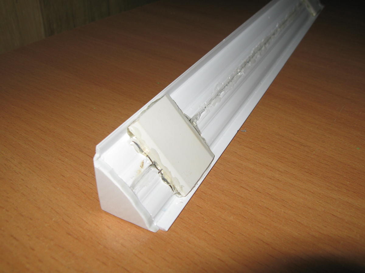 Под руку попался вот такой ПВХ профиль(вроде плинтус на ванну..)