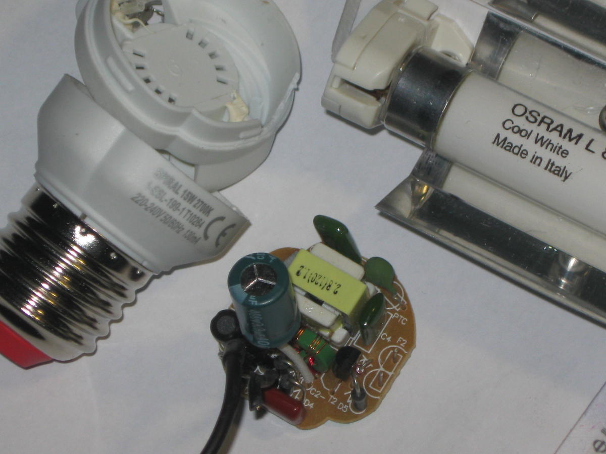 Электронный балласт взял от перегоревшей энергосберегайки(сама лампа сгорела,а электроника осталась целой)Планировалось две лампы по 8 Вт,значит балласт надо подобрать порядка 16 Вт,нашлось только 15 Вт,но это подойдет