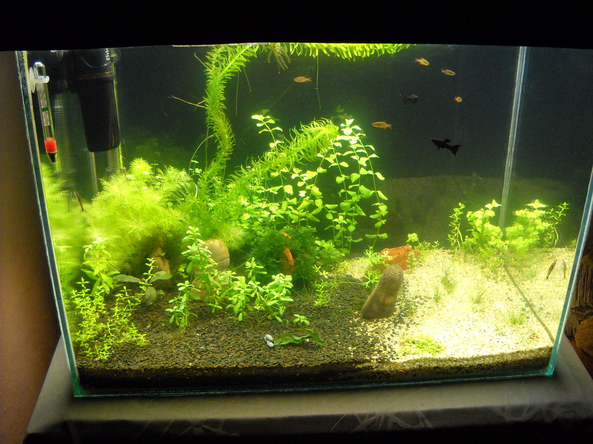 Так от,взявся я запускати свій новий акваріум. Грунт,вода,купівля рослин,рибок і тд. Не буду детально описувати фракції,показники і таке інше..у кожного це індивідуально і наразі не суттєво. Після запуску минуло два тижні,почали появлятись рибки,вода прозора,все файно:тішився я і всі разом зі мною,але не довго..Перша ознака,що акваріум не тільки декор,з"явилась на третій тиждень потемнінням рослин,грунту,стінок бурим нальотом - так звані діатомові,чи бурі водорослі(дехто їх розрізнює) які легко знімались мочалкою,але дуже швидко розповсюджувались і заполонили весь акваріум,пригнічуючі вищі рослини. Помогли теодоксуси,маячня з освітленням (зменьшення),призупинка руху води і отоцинклюси,які їх вже добили.