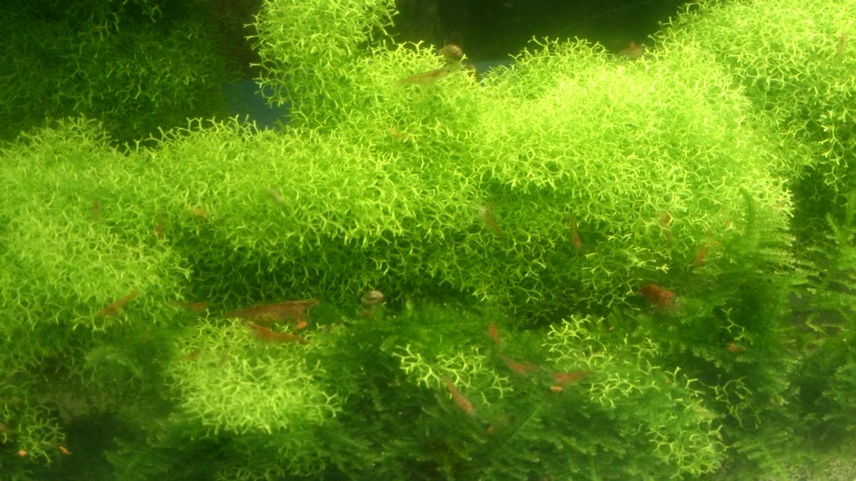 Аква.70литров.Население креветки черри.Из оборудование только лампа Т8 20 вт.Растения-риччия, папоротник,Криптокорина,мох,анубиас и гидрокатила.
