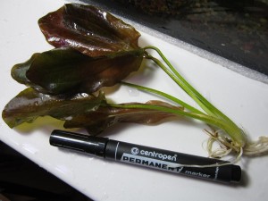 Имеет средний размер (30-40 см) и густую розетку листьев, и смотрится очень эффектно, особенно, в больших аквариумах. Размножаются стрелками, в узлах которых образуется «детки». Иногда размножается делением корневища.