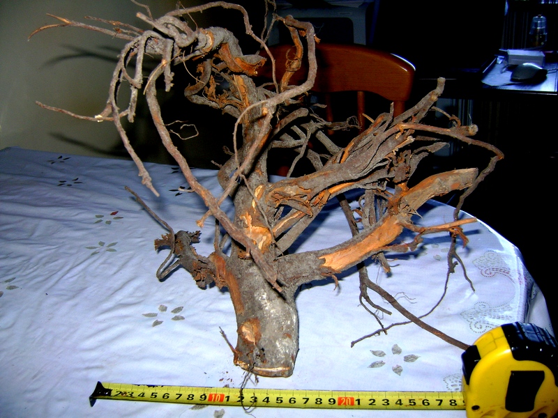 Мавка, нашел одну коряжку. Если лишнее поубирать, то вполне в ведро влезет. Корень, скорее всего вишня. Абсолютно сухая- корч с прошлого лета под навесом валялся.
