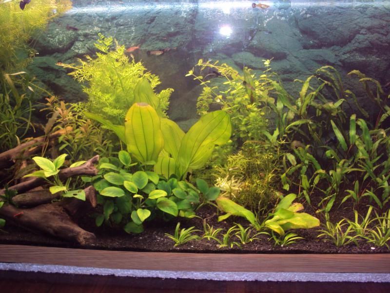 Запуск две недели назад С засаживанием растений... честно говоря помогал один очень добрый форумчанин. Ему отдельное большое спасибо!!! Литраж 200л. свет 4лампы Т8 30w Со2 и удо пока не подаются. Планирую запустить туда харацинок, но пока в раздумьях. Может кто то покритикует по свету, растениям и т д.
