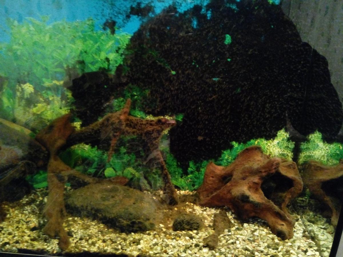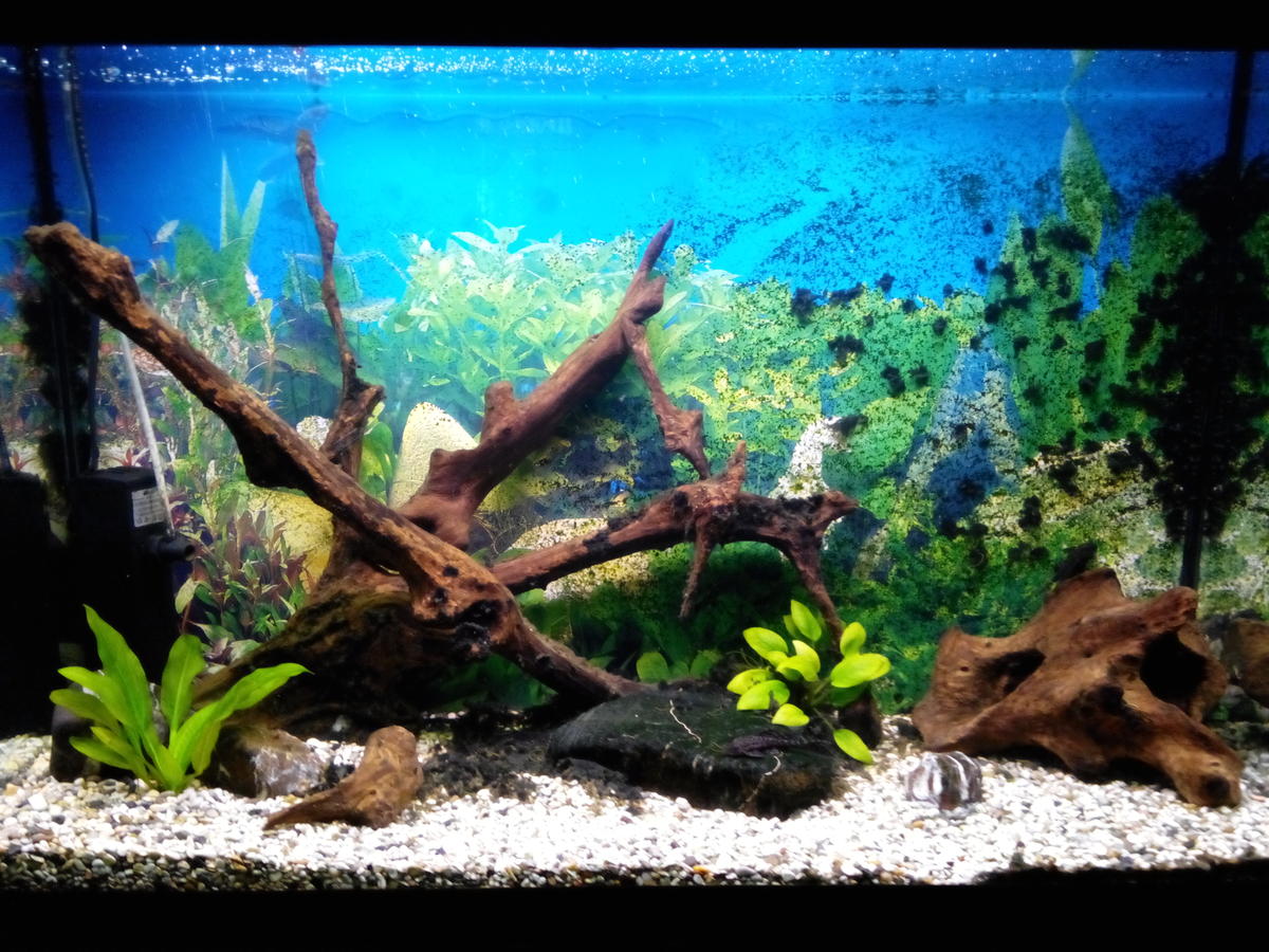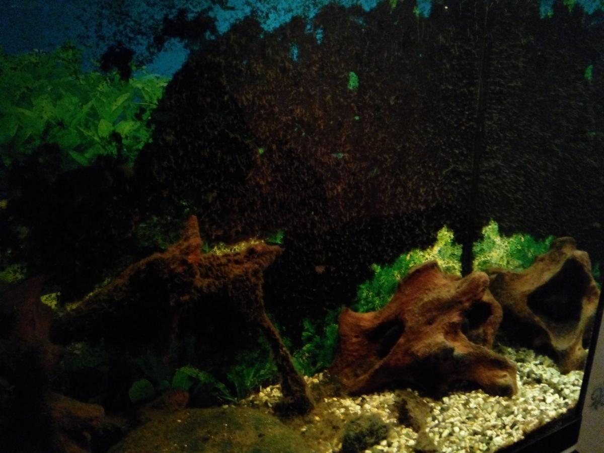 Так вот, после трагической гибели второго сомика, все камни, коряги и особенно задняя стенка стали покрываться