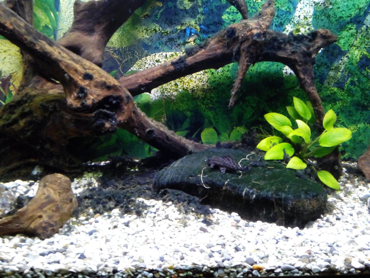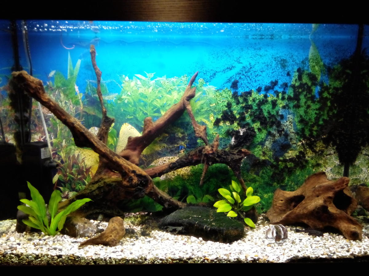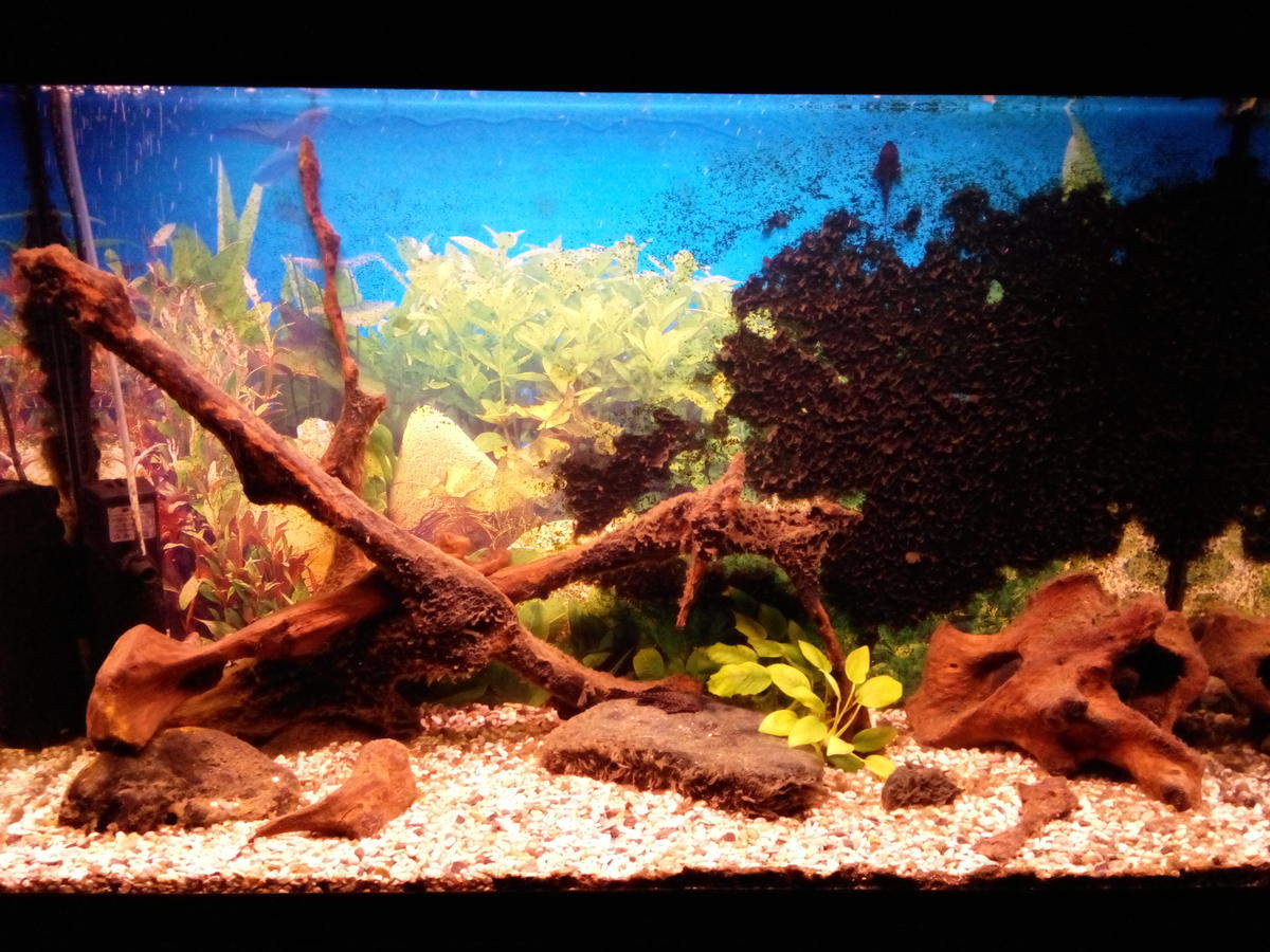 Так вот, после трагической гибели второго сомика, все камни, коряги и особенно задняя стенка стали покрываться