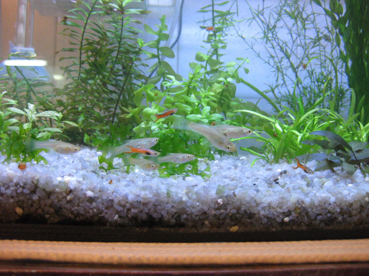 Рыбы бедовые - с первой покупкой приехали глисты и азиатские тетрахимены. Были пролечены, но мне их физ.показатели не нравятся и вдобавок сейчас среди потомства окрашивается пестрый самец аля орхид-эндлер. Возиться еще с вычищением линии нет ни возможностей, ни желания, поэтому отправляются или на отдачу, или в унитаз.
