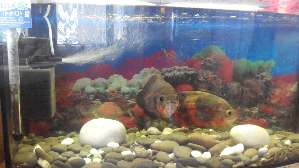 Отсадник 100л, слишком мал для двоих астронотусов. Идет быстрое накопление азотистых. Возможно накопился аммиак и нитрит в отсаднике и рыбам поплохело.