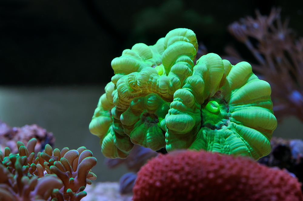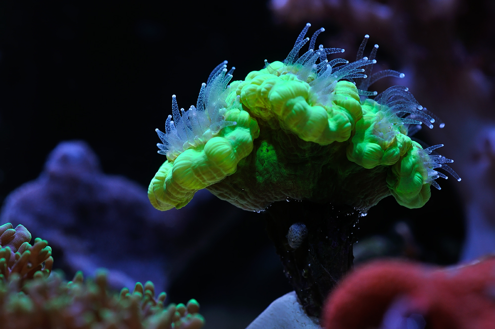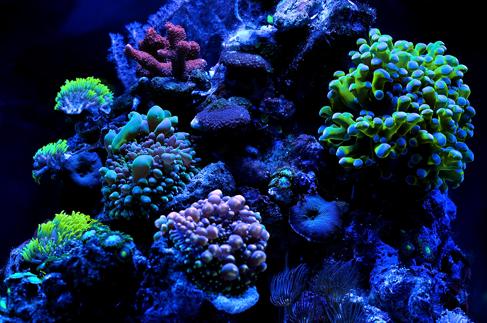 Кораллы: горгонарии фотосинтетик, саркофитоны, синулярии, парозоантусы, палитои, монтипоры, ксении 2-х видов, родактисы, бреареум, зоантусы, дискосомы красные, актиния, кауластрея зеленая и коричневая, кладиелла.