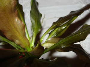Только при ярком освещении можно получить листья бордового цвета, причем интенсивный бордовый цвет имеют в основном молодые листья, более старые имеют темно-зеленый цвет листьев с бордовыми прожилками и черенками.