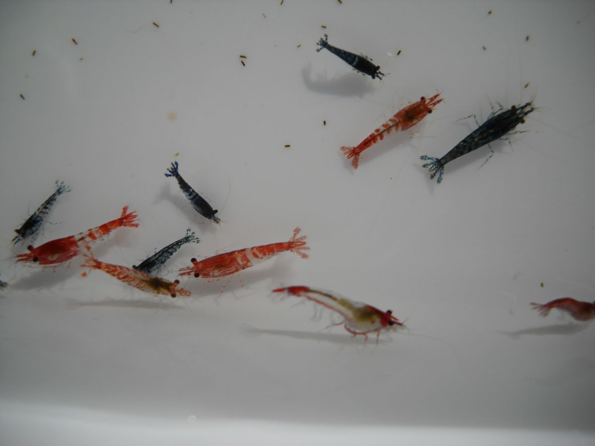 Предлагаемая креветка - это отбраковка Сакуры Рэд (Neocaridina Sakura Red), красной Рили (Neocaridina red Sp. Rili), Рили Карбон (Neocaridina Carbon Rilli), Оранжевой Сакуры (Sakura Orange).