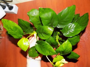 Anubias barteri var. nana растение небольшого размера, высота куста обычно не превышает 15 см. Корневище ползучее, может достигать достаточно большой длины и активно ветвится. Листья очень плотные, темно-зеленой окраски. Можно использовать в аквариумах с травоядными рыбами. Растение неприхотливое и нормально растет в любых условиях. У меня регулярно цветет.