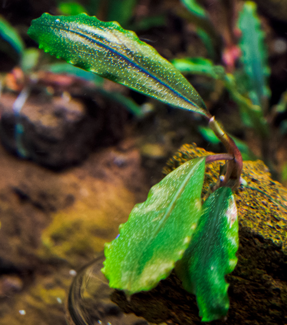 Примечательна тем, что ее листки глянцевые, наверное жители аквариума видят в ней свое отображение, ни у одной у меня имеющихся буц такого глянца не видел...