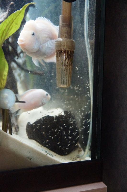 кормил сухим Tetra Cichlids Stik + иногда креветка. НЕ ест уже как дней 5ть. Три недели назад был нерест