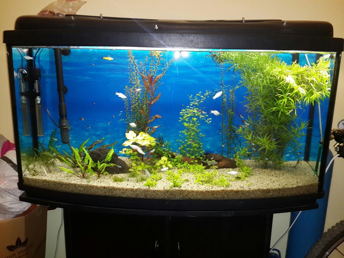Акваріум - 200л, Грунт - кварц, СО2 - постійно, Світло - 10год (150ват), Фільтр - JBL e1501, Температура 25