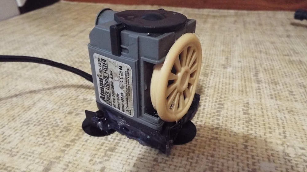 Потом используя термопистолет, приклеил рамку с присосками от другой какой-то помпы.