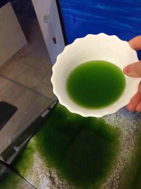 Уже полгода выставляю бутылки на окно, хочу, чтобы также цвело на корм для рачков. Нефига не цветет, только по стенкам слегка