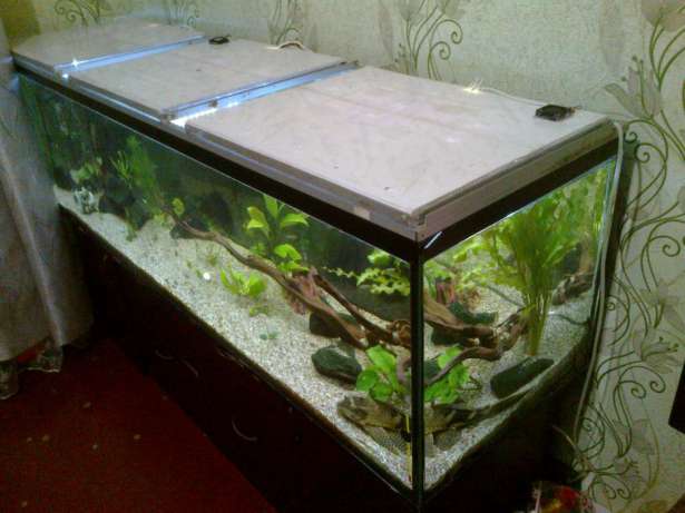 продам аквариум 180*50*50(толщина стекла 10мм, фирма природа) с крышкой на диодном освещении. На аквариуме есть скол, на функциональность не влияет(на фото видно). По городу привезу(есть транспорт). Цена за банку со светом 2000 грн.