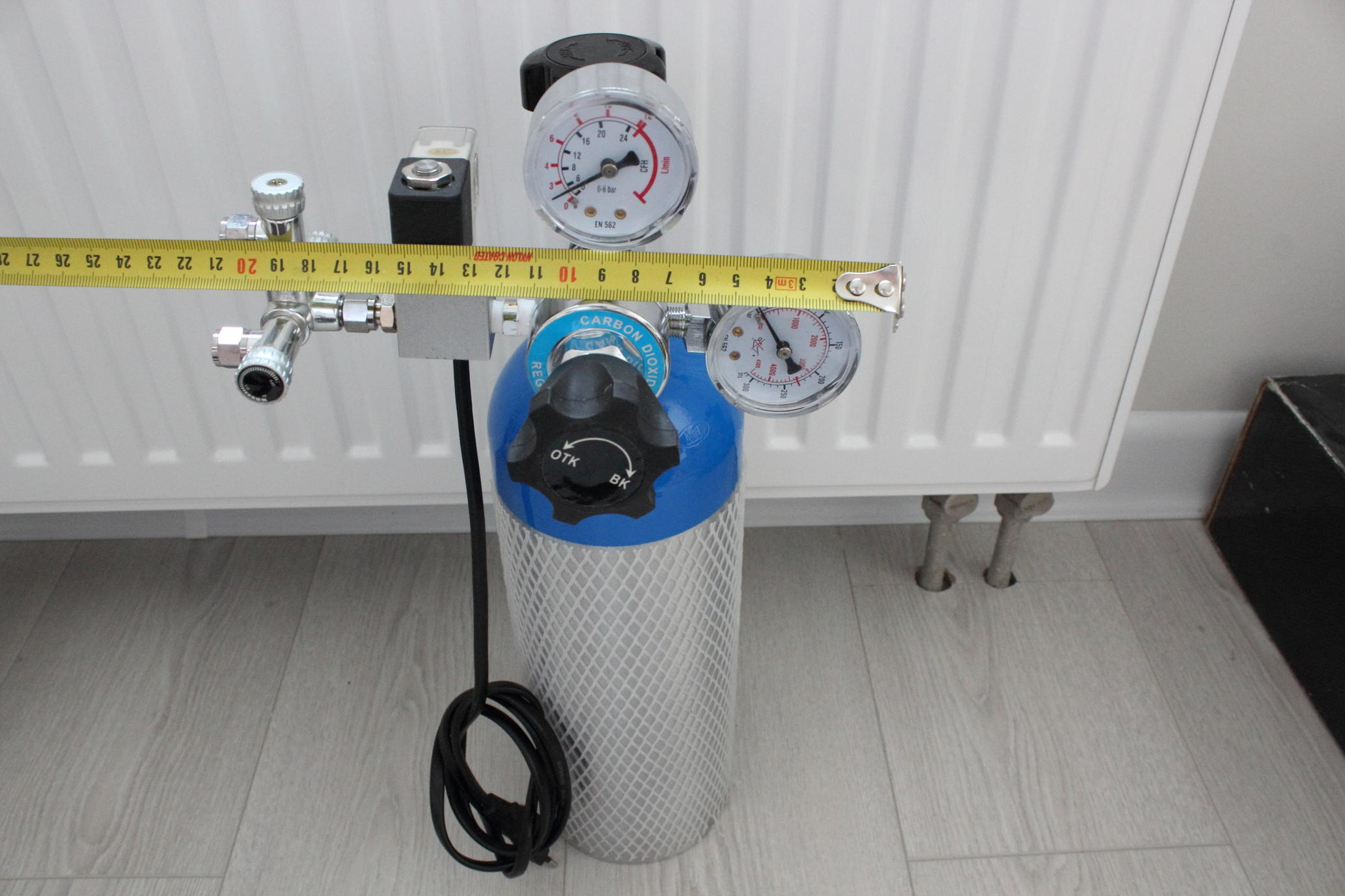Система бомбическая, красивая, если б было где использовать, или в планах хотя бы - не продавал бы. При покупке сразу был перемотан под фумку один переходник (мастер там немного налажал, потому под его чутким руководством по телефону сделал перемотку). Система компактная, свободно залазила в тумбу за фильтром. Дно у балона плоское - стоит без всяких подставок. Проверка до 2020 года. Заправлялась два раза по 1.2 литра. Отработала где-то год-полтора, я - первый хозяин.