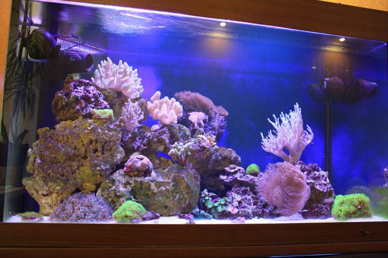 Морською акваріумістикою займаюсь 2роки. Першим був Ресун 92л. пізніше переіхав в 300л. два запуска були вдалі,але хотілось щось більше,і тепер буде на старті 500л.