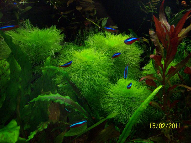 Неоны лучше смотрятся с черным фоном.....со светлым грунтом рыбы блекнут.....
