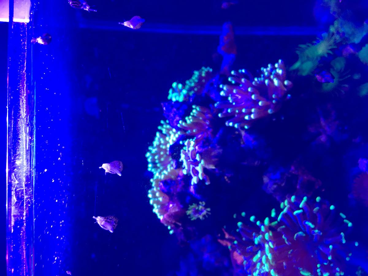 Добрый день.Есть для обмена около 15 улиток(8 мм-1 см) также есть один из видов актинии зеленой названия не знаю( 4х4 см)....и фраг бриариума 4х3 см