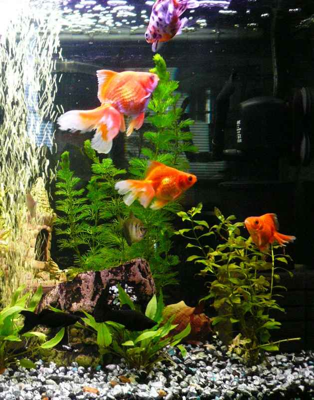 Ну, можно эхи гибридные большие закопать и камнями попридавливать. И аналогично валиснерию (отрастает, полагаю, быстрее чем золотухи ее раздербанят). Но это все теория - лишь 1 раз держал 1 золотую рыбку.