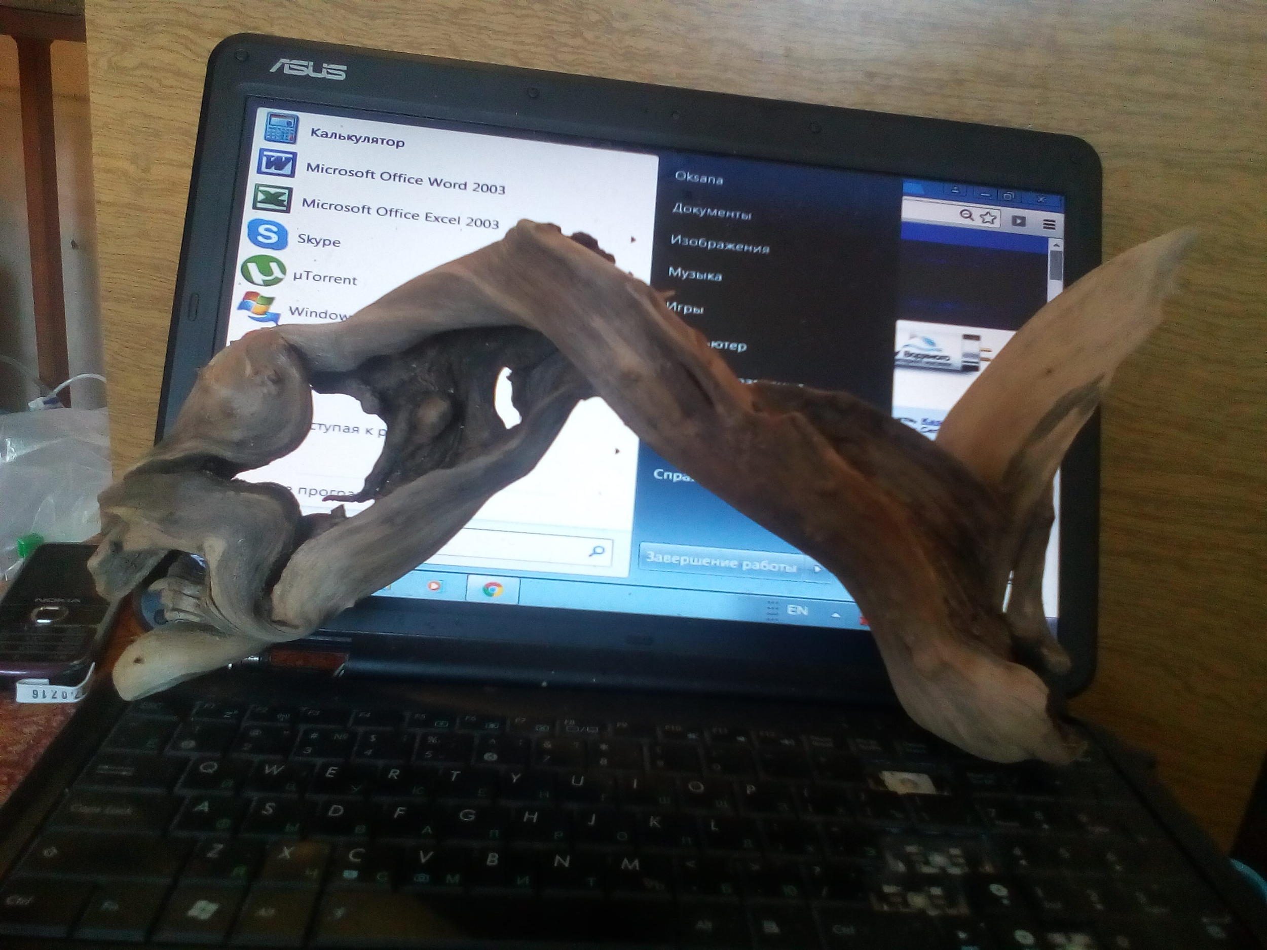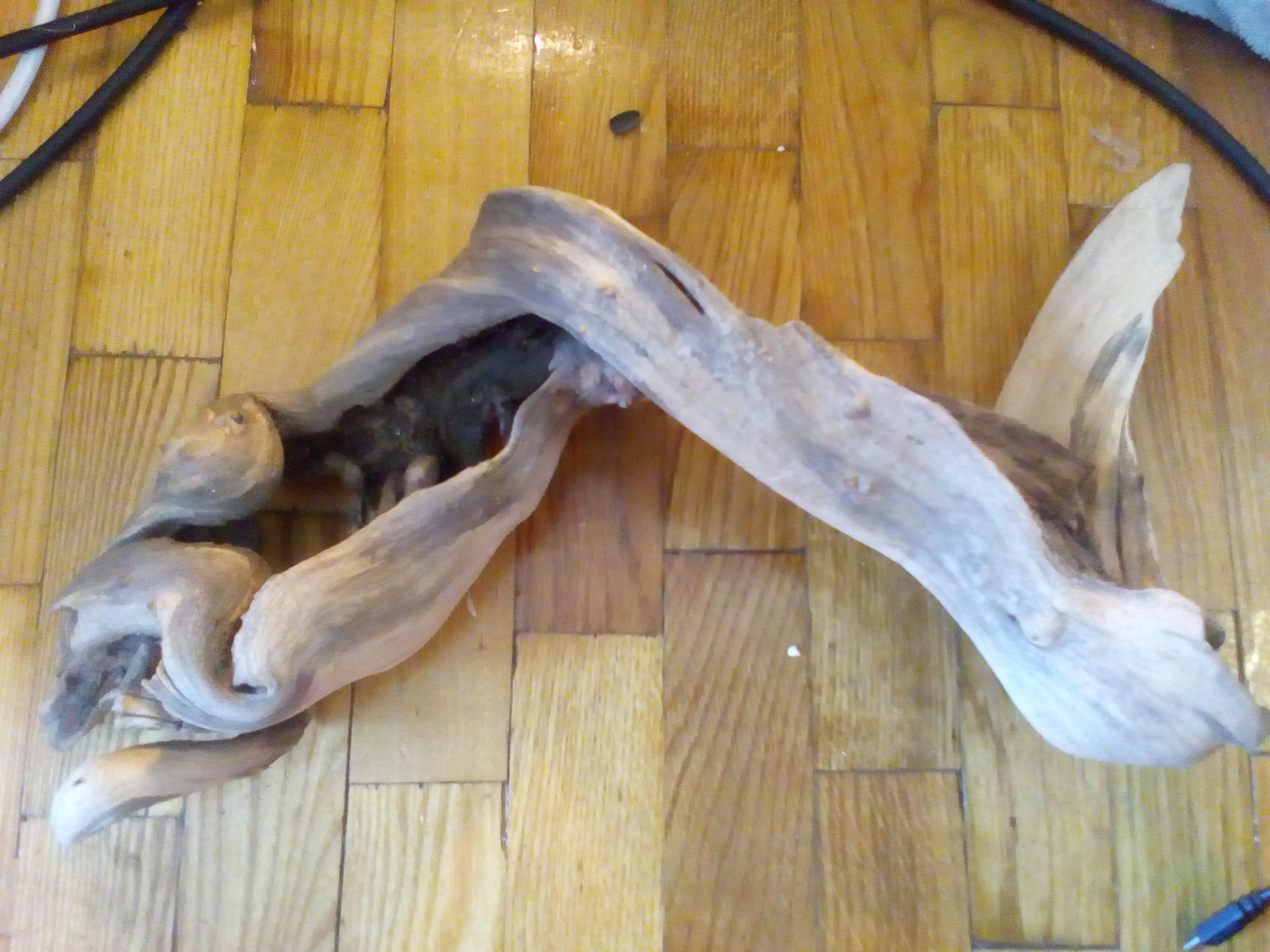 Отдам в хорошие руки коряжку. Происхождение древесины мне не известно, прошлым летом выловила в речке. Не вымачивала и не вываривала - просто помыла щеткой, обдала кипятком и опустила в аквариум. В аквариуме пролежала год, но так и не утонула - придавливала камнями.