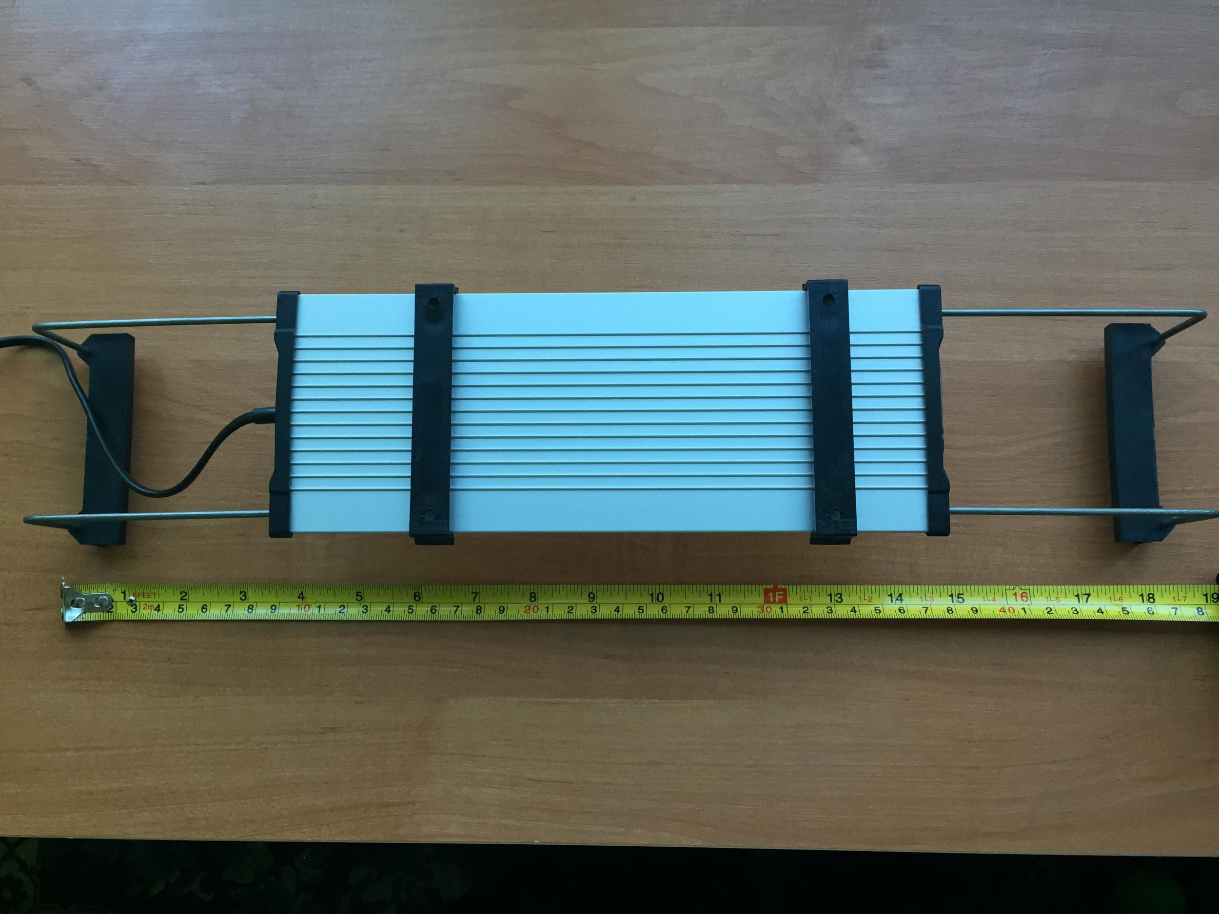 Первые впечатление положительное! Первое что привлекло мое внимание - это светодиодная плата  Второе - это ножки, но при попытке их вытянуть получилось это не сразу... то ли я слишком боялся что то повредить, то ли они действительно туговато сидят  Вытягиваются ножки не равномерно и с первой попытки у меня получались "перекосы"  . Хоть везде и пишут что светильник предназначен для для открытых пресноводных аквариумов шириной 25-30 см, у меня получилось вытянуть ножки на общую длину 45см  При этом светильник стоял на поверхности прочно, а ножки не прогибались. Мб ножки и дальше можна вытянуть, но я в этом не видел смысла.