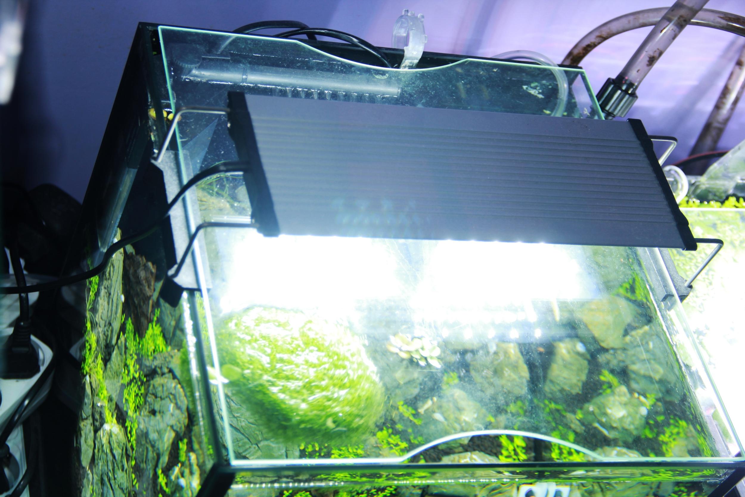 Согласно заявленным данным светильник рассчитан для аквариумов шириной 25-30 см. У меня есть два наноаквариума шириной как на 25 см, так и на 30 см. Так как на 20 л запущен уже давно и там грубо говоря "спартанские" условия, то было принято решение проводить апробацию на свеженьком 30л.