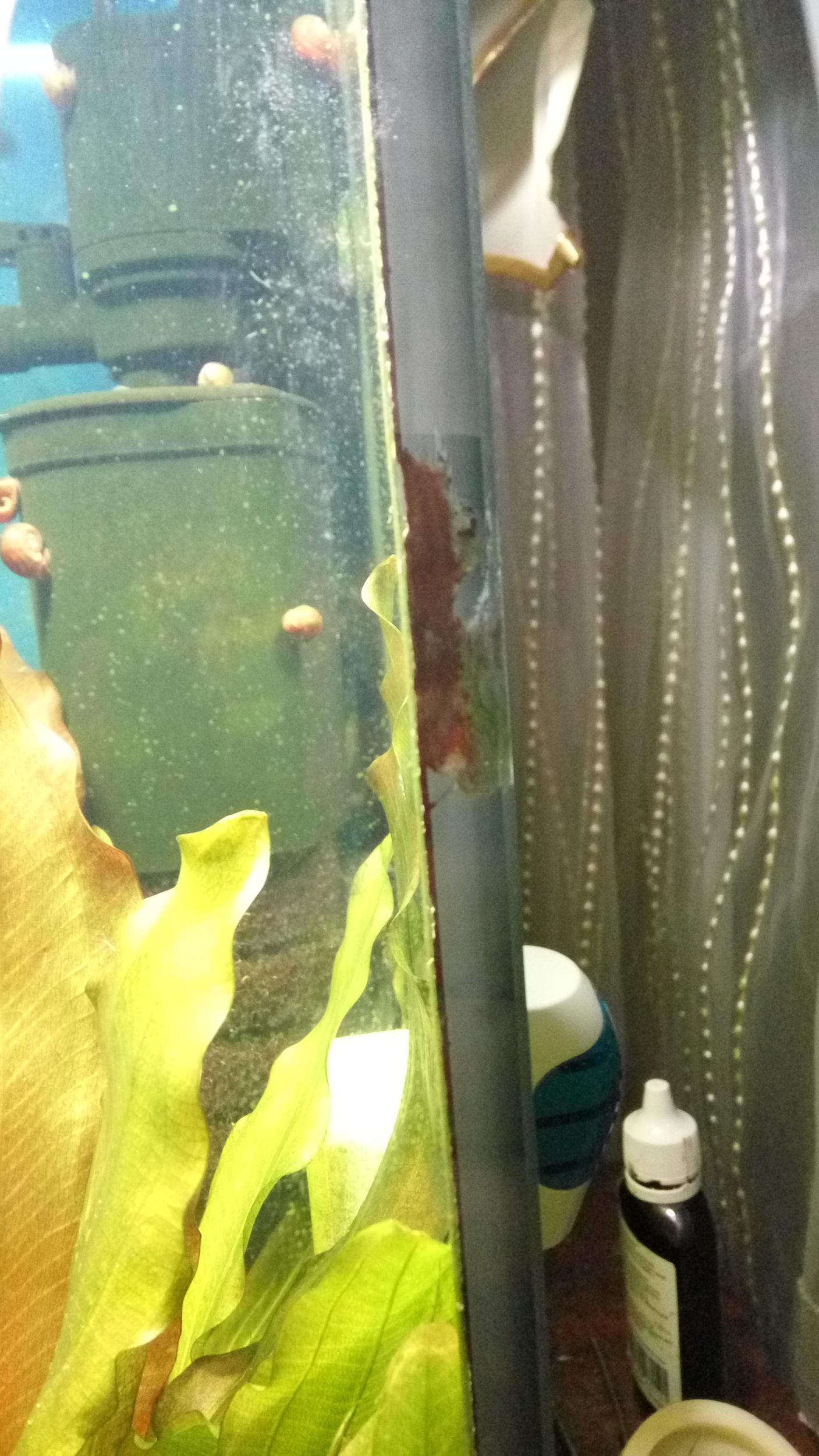 Подскажите,появилось пятно возле стыков стекол,что это грибок или клей рассыхается и что с этим делать? Аквас "Природа" 72 литра.