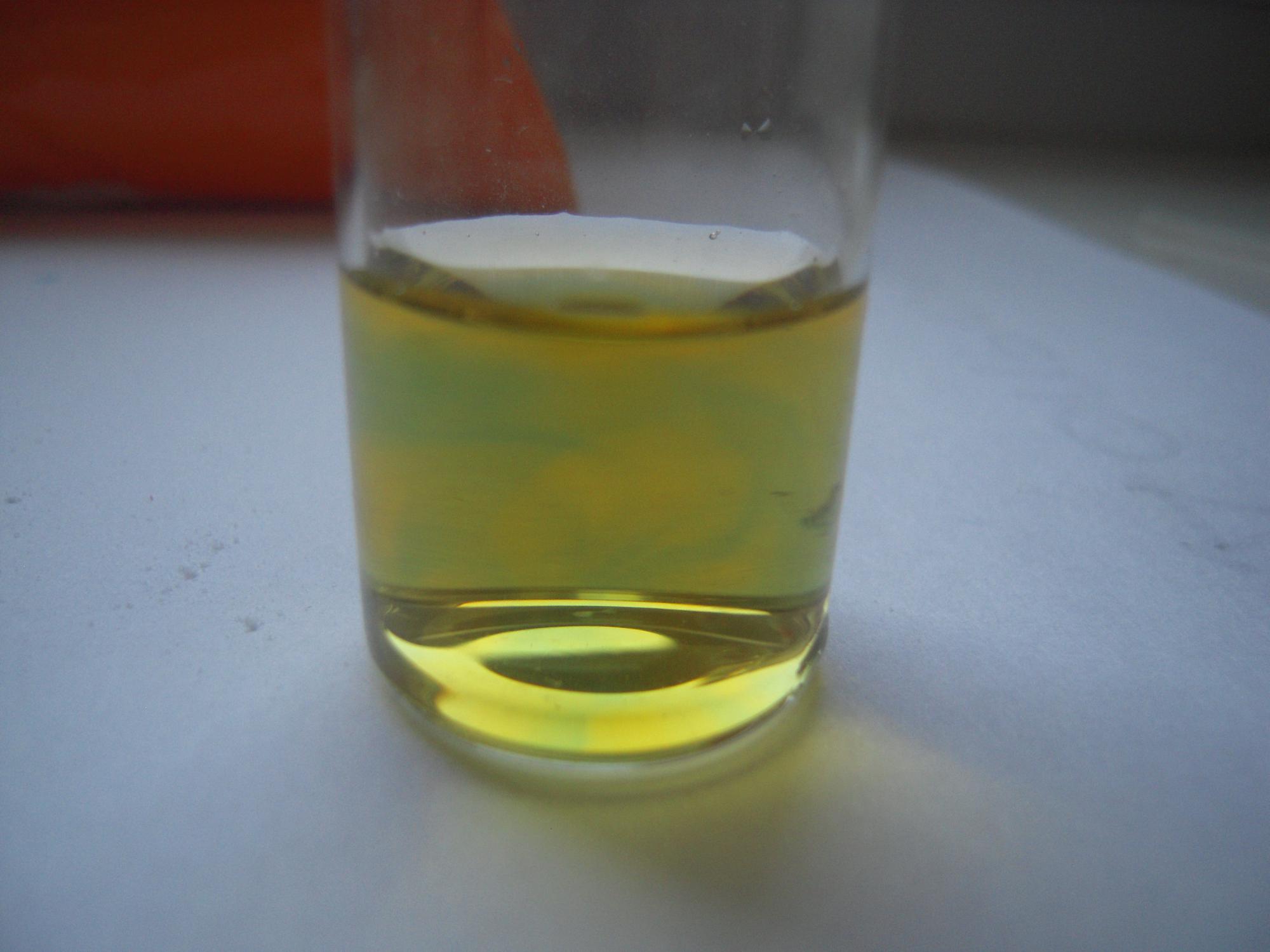 Первая капля:жидкость приобрела голубоватый оттенок:
