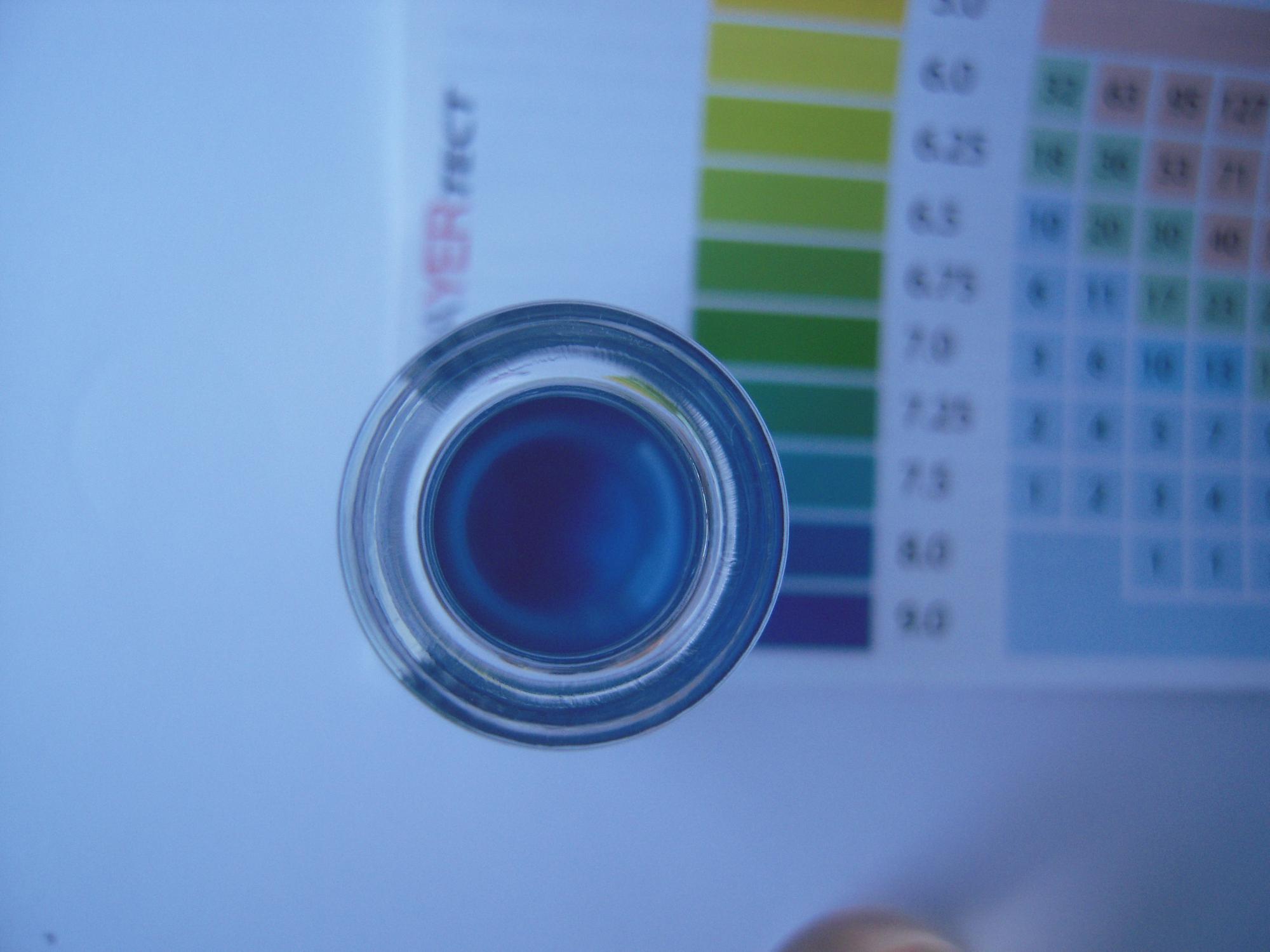 взболтал пробирку круговыми движениями и получил насыщенный синий цвет, согласно шкале это означает,что pH=8