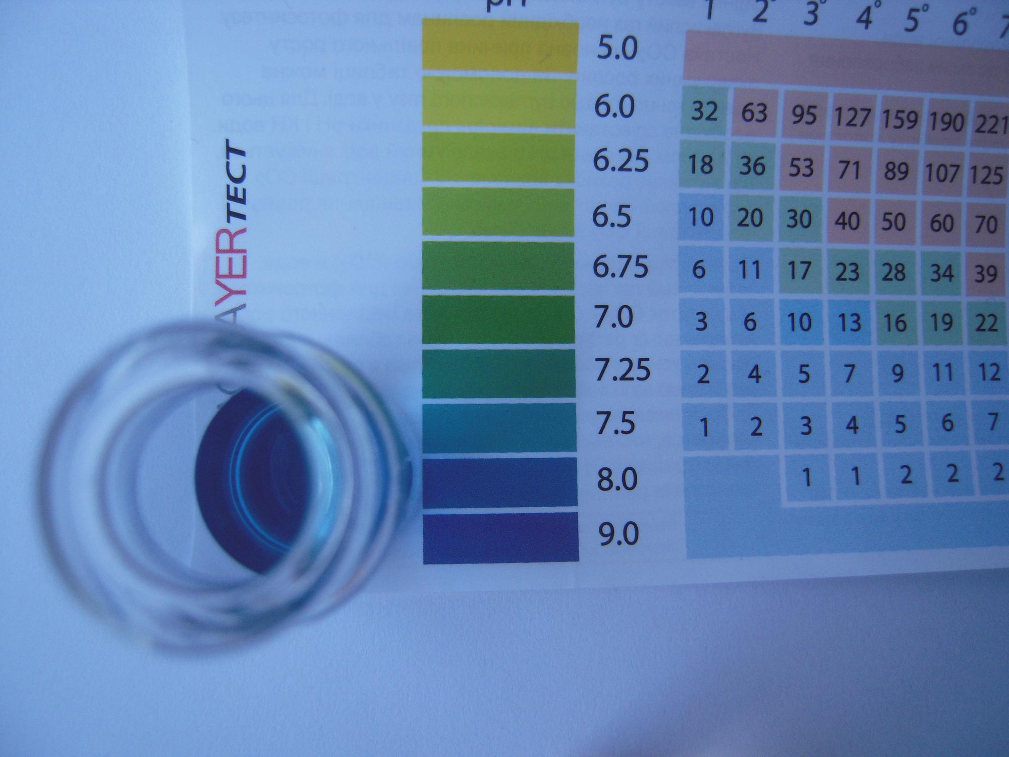 1.Тесты точно показали параметры воды (в качестве тестируемой воды использовалась вода с ph=8 и КН=8);