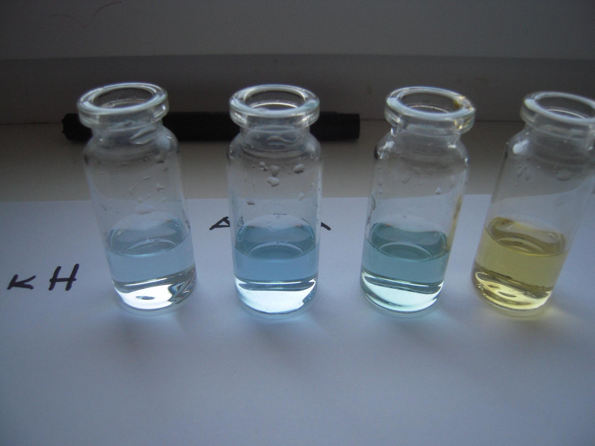Капаем реактив в 5 мл. воды до изменения цвета с синего к желтому.