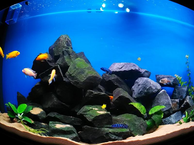 сегодня добавил еще немного камней вот что получилось. Так же в акве новий житель сомик платидор, погоняло платон))).