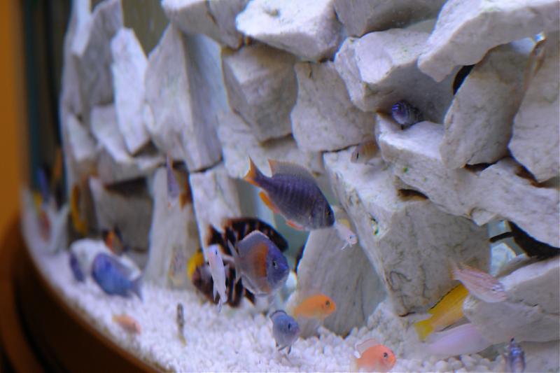 Рад представить вашему вниманию свой аквариум. Его "экспериментальность" заключается в плотности его населения. всё начиналось с 89 рыб - это было рекордное количество. На данный момент - это 23 различных вида (малави и танганьика), общее количество 71 рыба. Все специалисты и эксперты в аквариумистике в один голос утверждают о невозможности проживания такого количества рыб в одном аквариуме объёмом 287 литров. Безусловно, что вместе с ростом рыб часть из них постепенно отселяется. В конечном итоге их останется около 35 - 37. А пока все рыбы активно растут и развиваются, и "прощаться" с каждой новой отселяемой рыбой всё сложнее. Вобщем эксперимент продолжается и всё выгладит вот так:
