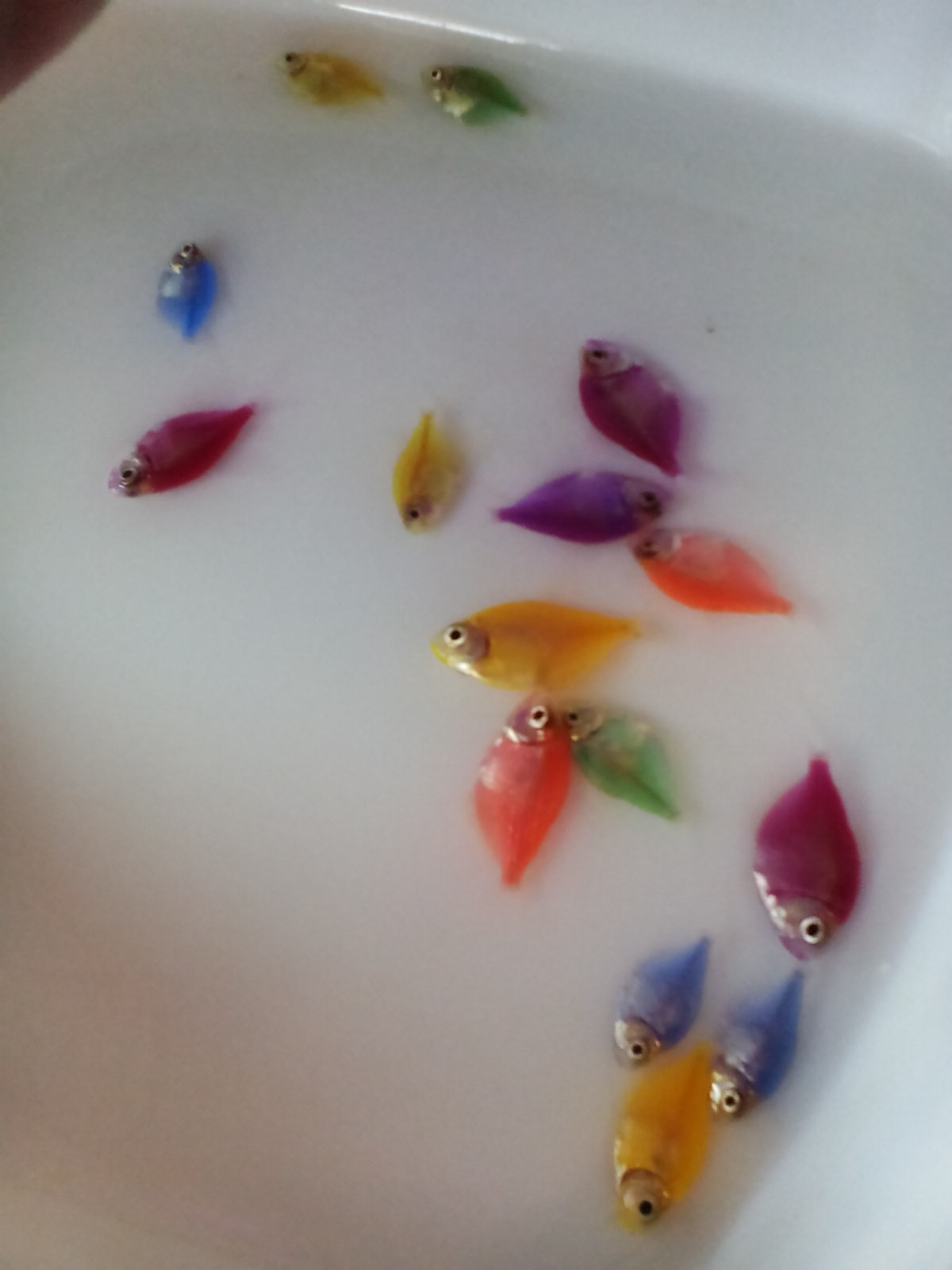 В добавок салатовым и красным данио вывели оранжевых, синих и фиолетовых. Все они были получены искусственным путем