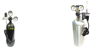 Совсем недавно появились установки на соде и лимонной кислоте максимально приближенные по параметрам работы к баллонным системам подачи СО2 в аквариум. Такие установки визуально от обычной баллонной системы СО2 не отличаются: в качестве емкости используется баллон, есть манометр с защитным взрывным клапаном сброса избыточного давления, есть электромагнитный клапан для включения/отключения по таймеру или контроллером, есть дроссель тонкой настройки.