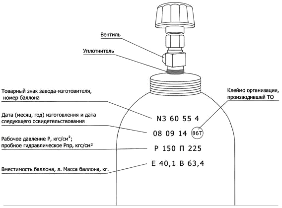 Эти данные выбиваются на горловине каждого баллона и содержат такую информацию: