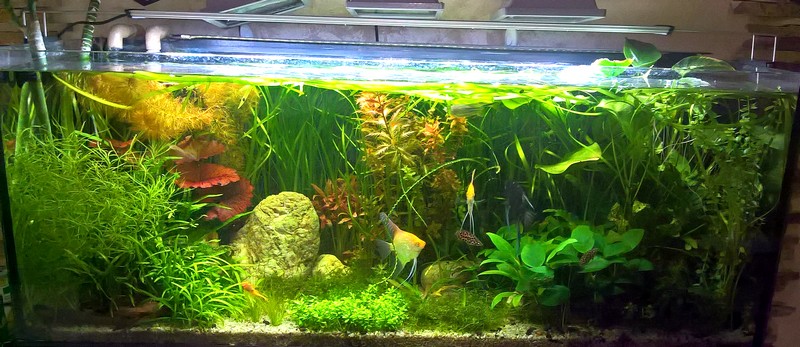Прошло две недели от смены света. Напомню- кроме смены света, НИКАКИХ изменений ни в чем. Аквариум выглядит так.