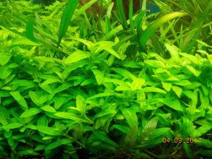 Растение отличается компактностью, небольшими размерами и сочной ярко-зеленой окраской. Длина листа от 2*до 4*см, ширина около 1-2 см. Его можно успешно выращивать в больших, малых и даже наноаквариумах. Когда оно разрастается, то покрывает дно великолепным ярко-зеленым ковром с живописными холмами.
