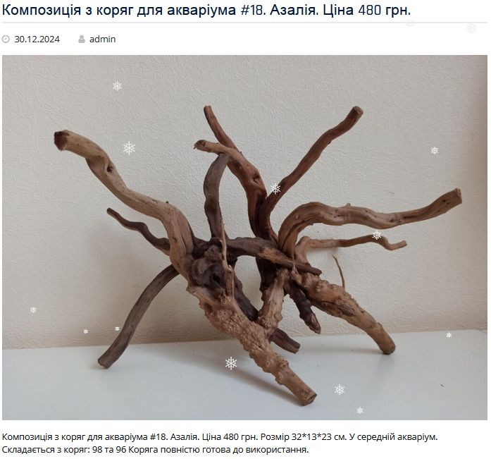Є у наявності більше 100 коряг та композицій різної форми та розмірів!