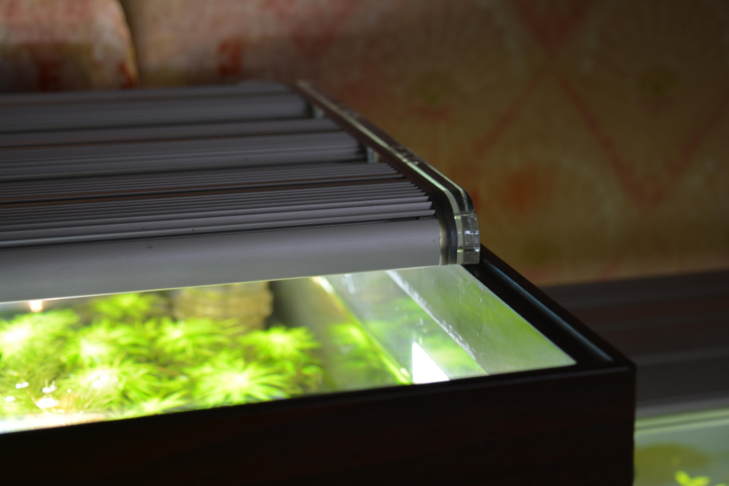 Светильник на аквариум Ювель 180 литров, корпус светильника сделан так, чтоб торцевые заглушки скользили по боковым направляющим верхней части пластикового периметра (владельцы Ювелей меня поймут ).