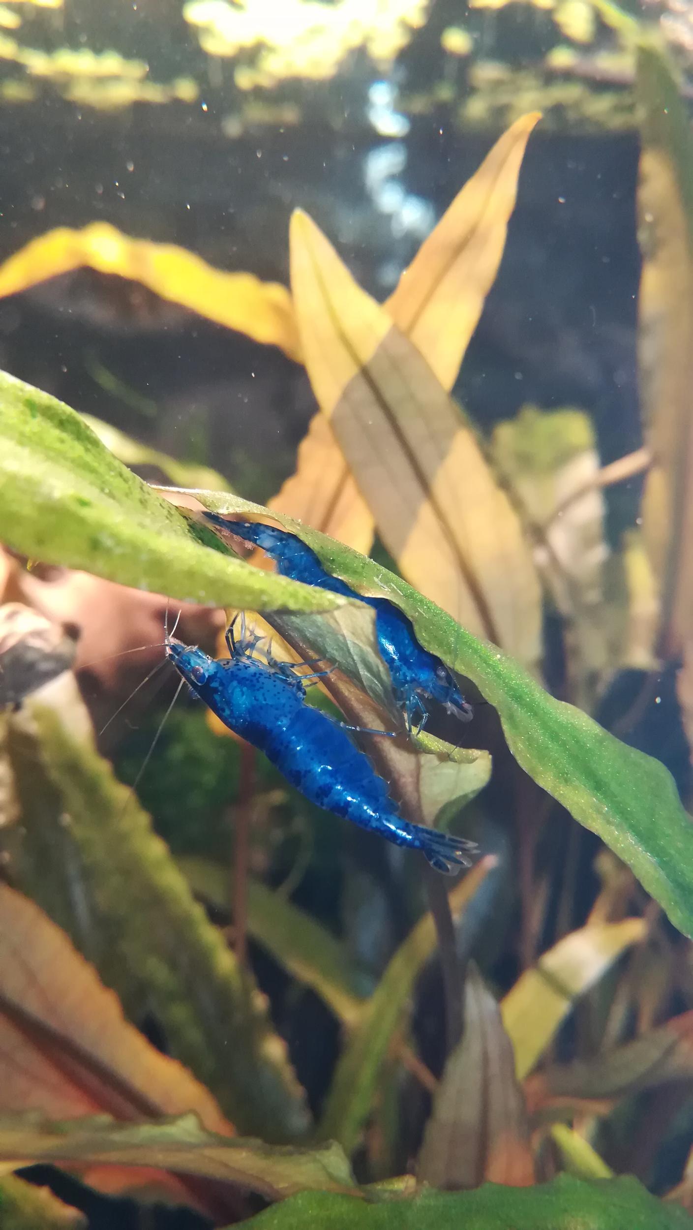 Аквариумные креветки синего цвета не требующая особого ухода.