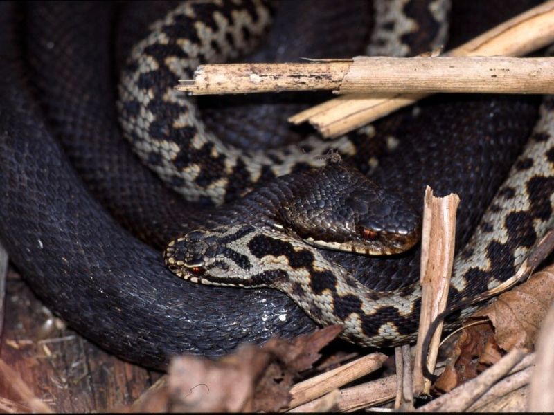 Посмотрите, пожалуйста, на расположение щитков на голове и форму зрачка у (по порядку) обыкновенной гадюки (Vipera berus), обыкновенного ужа (Natrix natrix) и медянки (Coronella austriaca) и
