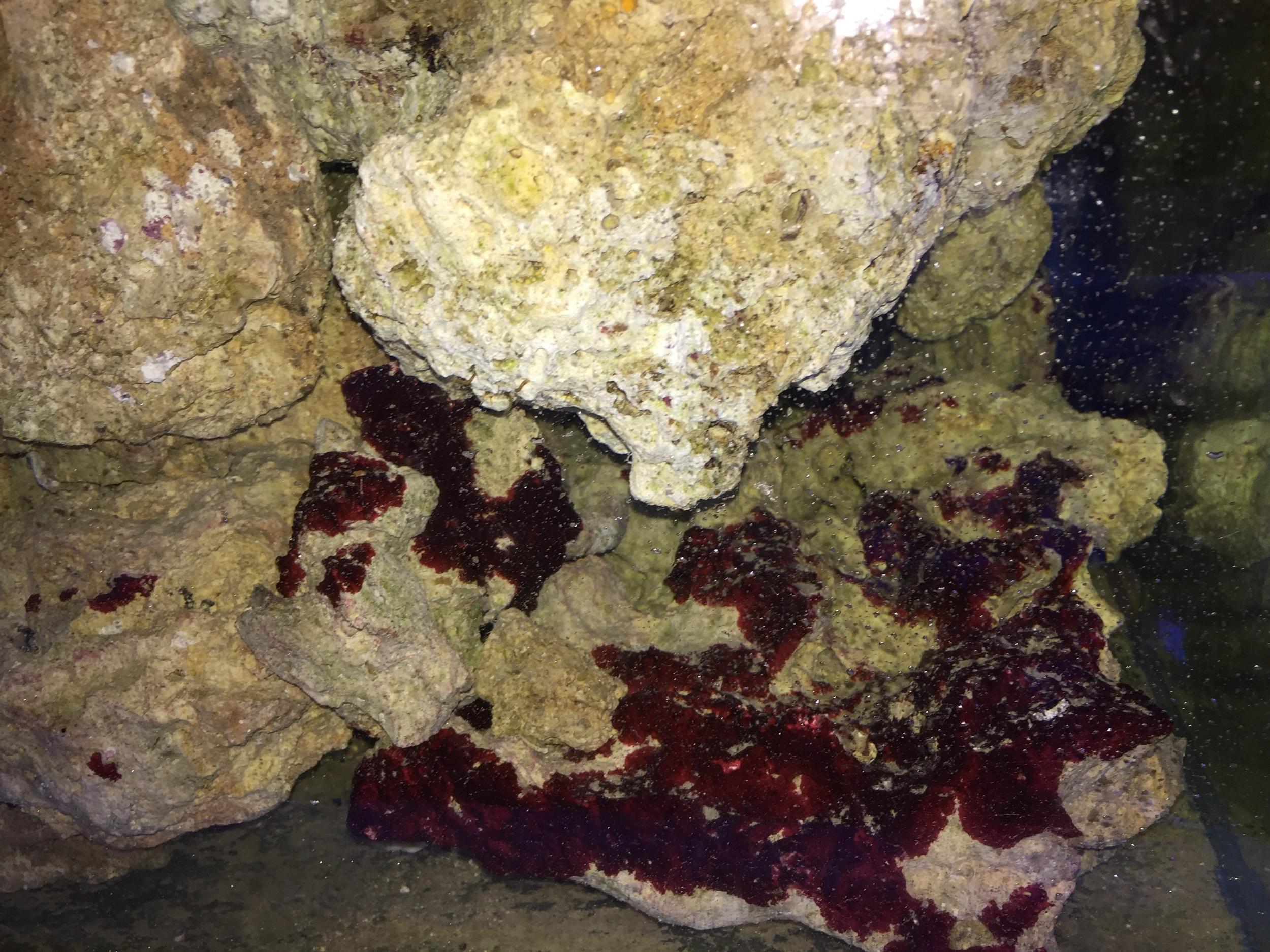 Камень пролежал около двух лет в нашем акулятнике и после около года в стойках для живого камня. Особых обрастаний или живности на нем нет, так как в последнее время находился без освещения..