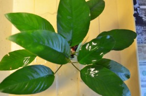 Крупный куст* Anubias «nangi», barteri var. nana x gilletti (R.A. Gasser). Выращен под лампами ЛБ. Хорошо растет в полностью погруженном состоянии. Молодой лист имеет ярко-красную пигментацию. *Первичный материал приобретался в частной коллекции Харькова в 2008 г.