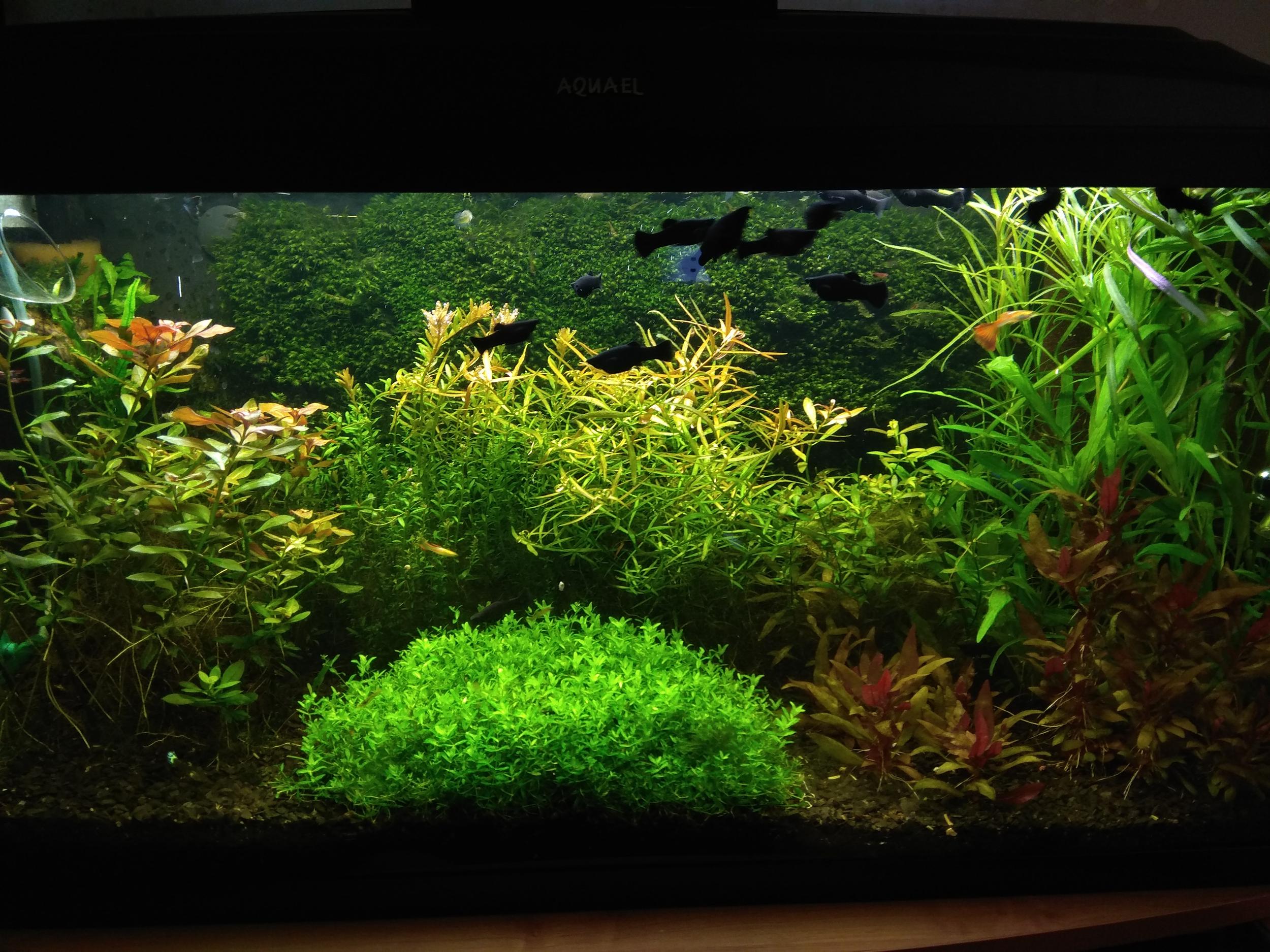 Касательно Вашего вопроса о аэрации. Мысль верная. Лучше включить небольшую аэрацию. Потому что даже со снижением уровня освещенности и уменьшение подачи СО2 вода будет меньше насыщаться кислородом.
