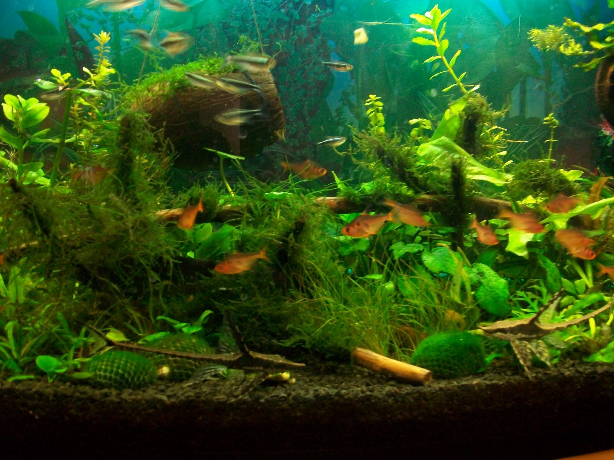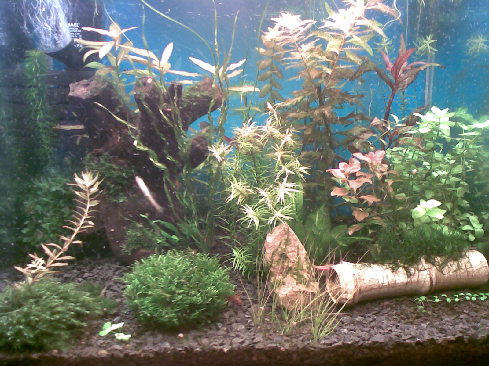 Аквариуму 3 месяца, еще видны последствия борьбы с водорослями, но победа за мной (без химии)  Дизайном не пахнет, но мхи есть. Правда качество фото "телефонное".